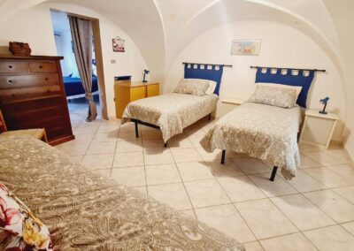 Nel cuore del paese di Porto Cesareo, a pochi passi dalla spiaggia della Triglia e vicino al centro storico ricco di attività commerciali, ristoranti e locali di vario genere, questo appartamento si compone di 2 camere da letto di cui una matrimoniale ed una tripla al primo piano ed un divano letto nella zona giorno al piano terra.