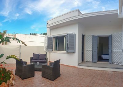 A pochissimi metri dal mare di Porto Cesareo Villa Medusa è una struttura che offre 3 soluzioni in una modernissima e funzionale unità immobiliare . Nel dettaglio il bilocale con ingresso indipendente,1 camera da letto matrimoniale, cucina accessoriata, zona pranzo con divano letto, bagno , cortile esterno arredato,1 posto auto e zona barbeque . La struttura è posizionata in prossimità della penisola della Strea, area di riserva Naturale ,servita da darsene che consentono anche il noleggio di piccole imbarcazioni per esplorare le numerose attrazioni naturali via mare. Di comodo accesso anche la litoranea collegata con S.Isidoro , Torre lapillo , Porto Selavaggio e molte altre località limitrofe alla rinomata Porto Cesareo. con altre 2 camere indipendenti la struttura puo\\’ ospitare fino ad un massimo di 8 persone se prenotata in toto.