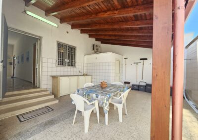La casa è super attrezzata: TV, aria condizionata, Wi-Fi e un bel giardino spazioso con tutto il necessario per godersi pranzi, cene o semplicemente un po’ di relax all’aperto nelle ore più calde.