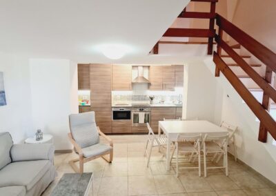 Composta da una ampia living room con annessa cucina è provvista di tutti i servizi incluso il Wi-Fi. Camere matrimoniali con condizionatore, realizzate su due soppalchi in muratura comode e luminose. Un bagno con doccia e terrazzo panoramico attrezzato con tavoli, sedie, barbecue ed un ombreggiate che vi permettrà di godere del sole di Porto Cesareo nel meraviglioso Salento.