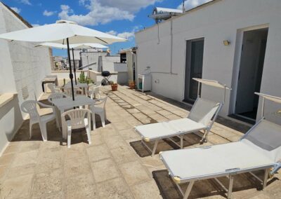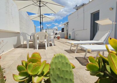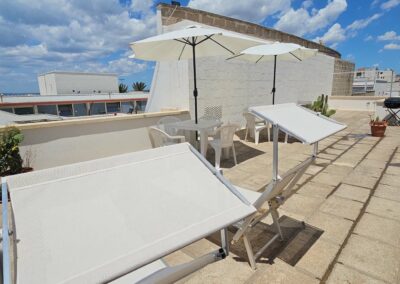 Situati al centro di Porto Cesareo, si compone di due appartamenti adiacenti. Un appartamento può ospitare 4 persone, il secondo un comodo  monolocale confortevole per 2 persone. Entrambi godono di un panorama mozzafiato sull’isola dei Conigli, conosciuta anche come l’isola Grande a cui si può accedere con il trasporto in barca o quando è bassa marea anche a piedi o a nuoto per i più esterni. Dal vostro appartamento potrete facilmente accedere senza utilizzare l’auto, nel cuore del paese dove si concentrano attività turistiche di ogni genere. Nelle immediate vicinaze il servizio di trasporto locale vi accompagnerà comodamente alle più belle spiagge del Salento dalla penisola della Strea fino all’incantevole Punta Prosciutto. Gli appartamenti sono comodi e di moderna reallizzazione , dotati di condizionatori d’aria, servizi con doccia e lavatrice.
