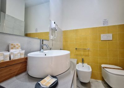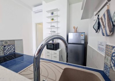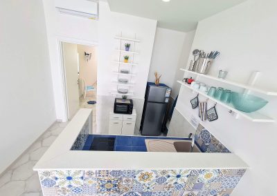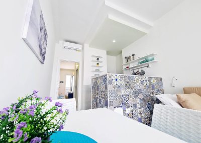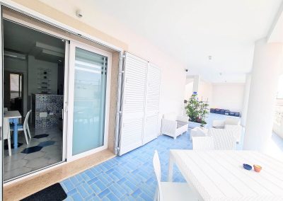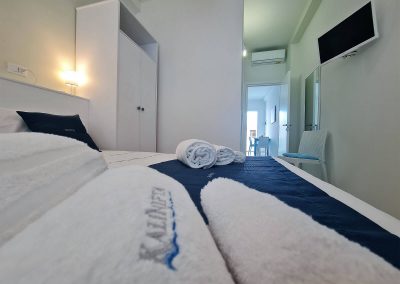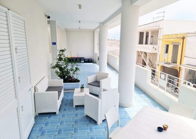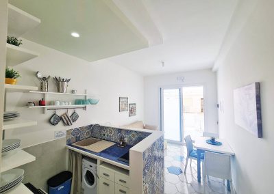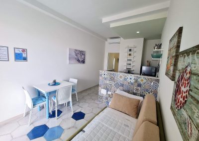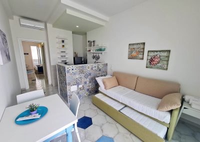 Questo appartamento può contenere fino ad un massimo di 4 posti letto ed è situato al piano primo con relativa area esterna privata. L’appartamento 216 è composto da una camera da letto matrimoniale e 2 singoli che formano un divano che all’ occorrenza può anche diventare matrimoniale, nella zona living.