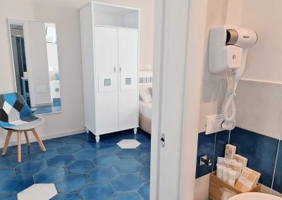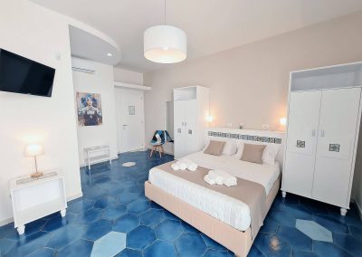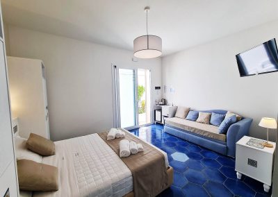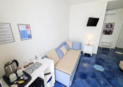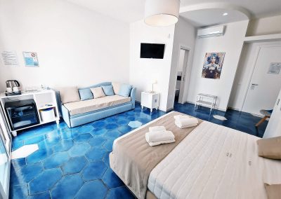 La camera 211 è una delle camere più grandi della struttura. Si trova a piano terra ed è fornita da un comodissimo letto matrimoniale ed 1 divano letto che in realtà è composto da un materasso singolo di alta qualità come seduta e un’ ulteriore materasso di pari qualità estraibile dallo stesso divano.