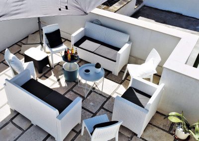 A disposizione dei nostri ospiti, la struttura a Torre Lapillo – Porto Cesareo offre un ampio terrazzo che vanta una vista mozzafiato, dove ogni giorno sarà possibile ammirare uno dei più belli e suggestivi tramonti d’Italia.