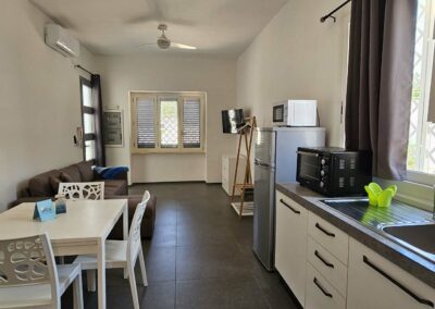 Struttura molto ben tenuta, pulita e confortevole. Particolarmente apprezzata la disponibilità di biciclette, aria condizionata e ventilatori. Di pregio l'assistenza e la cortesia dell'host. La posizione è un pò fuori dal centro Porto Cesareo ma raggiungibile in circa 20 minuti a piedi (consigliabile il tragitto a piedi soprattutto la sera per la scarsità di parcheggi del paese). Accanto alla struttura il market per la spesa. A pochi metri dalla spiaggia di sabbia con un mare splendido. Sicuramente da utilizzare.