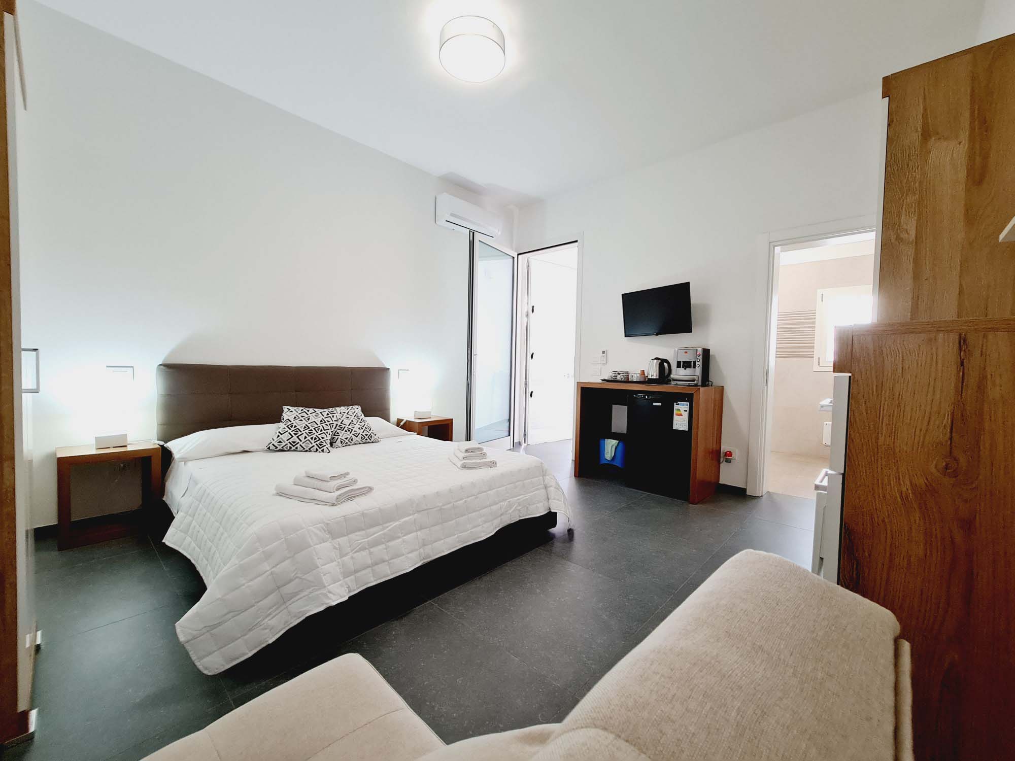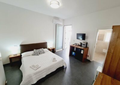 Camera 2 con ingresso indipendente e una camera da letto matrimoniale con bagno, minifrigo e macchine del caffè, cortile esterno arredato,1 posto auto e zona barbeque condivisa.