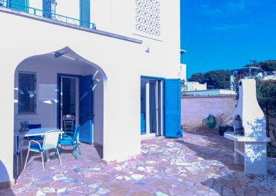 Il giardino ad uso privato è dotato di zona relax, barbeque e doccia esterna e consente di parcheggiare la vettura all’interno.